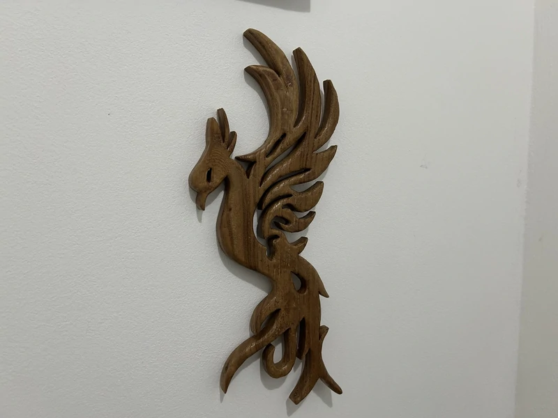 Le phénix - en bois de chêne - 30x19cms - à accrocher - Sur commande 40€