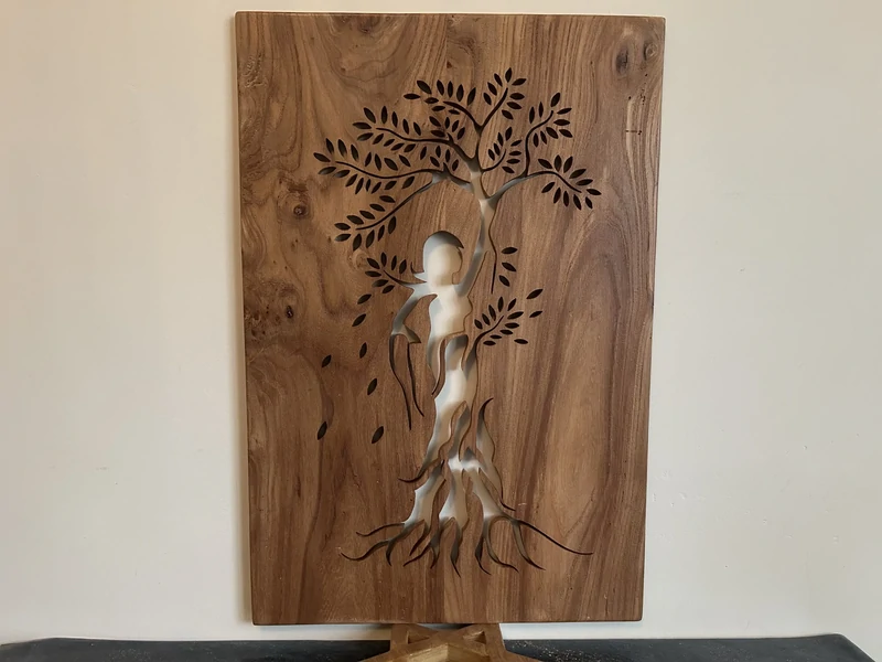 L'enracinement au féminin - bois de loupe d'orme - Finition fond dur et vitrificateur - 54x36 cms - A accrocher - En stock 130€